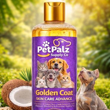 Golden Coat by PetPalz is a nourishing, all-natural skin and coat treatment designed to soothe irritation, repair dry or damaged skin, and restore your pet’s natural glow. This gentle yet powerful formula helps relieve hot spots, itching, scabs, and shedding while promoting softer fur and stronger, healthier hair growth.